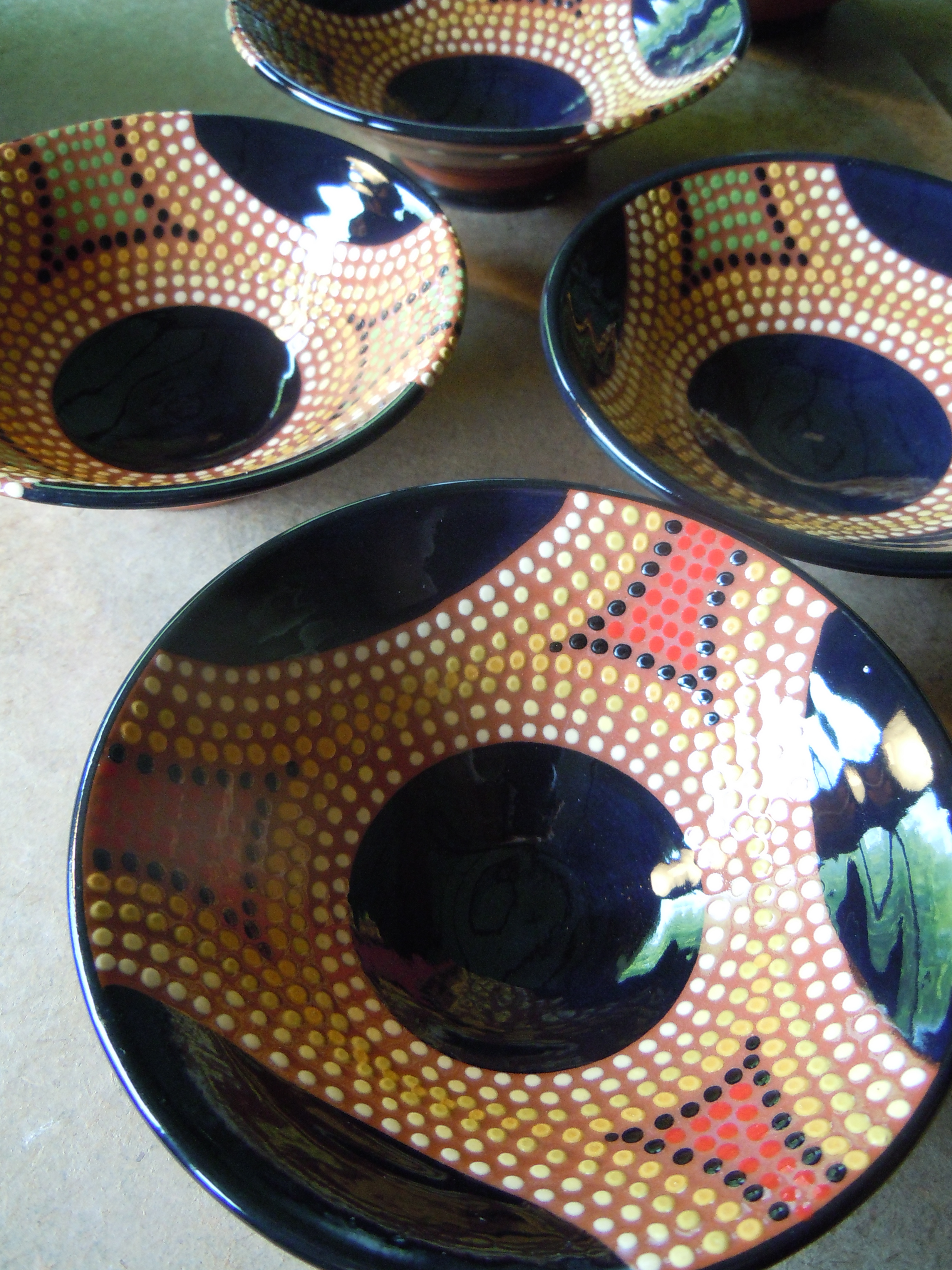 kilim and cactus blossom mini bowls Ceramic Showcase, April 26, 27 & 28 in Portland at the Covention Center – it’s the largest all clay show filled with ceramic art of all kinds!